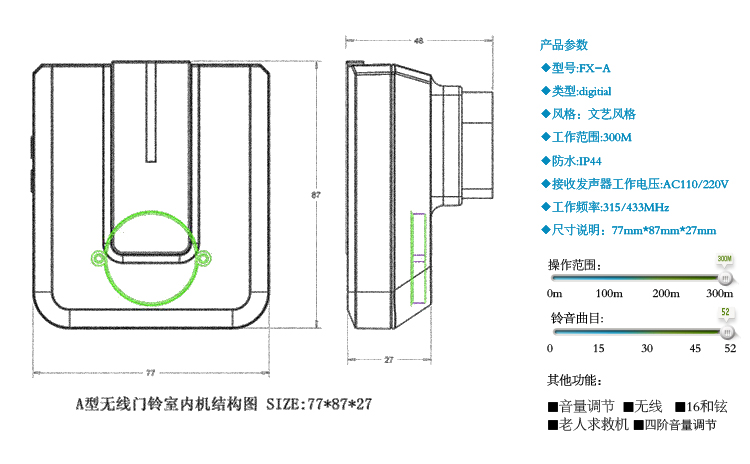 富盈星無(wú)線門鈴產(chǎn)品,適用于家居生活、寫字樓辦公、酒店服務(wù)、小區(qū)樓宇、工廠、工地和其它適合無(wú)線300米以內(nèi)短距離的環(huán)境。